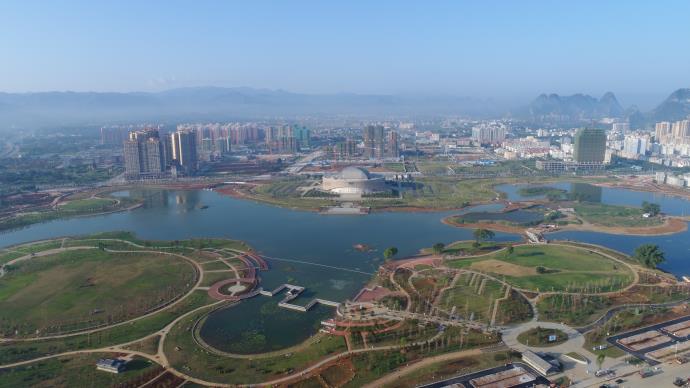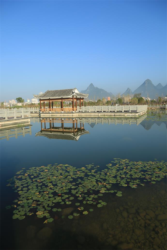 愛蓮湖生態公園項目是賀州市首個成功簽約的PPP項目,由賀州城投集團子公司市城投公司作為項目業主、賀州博世科環境投資建設管理有限責任公司負責實施。該項目建安費2.8億元,規劃總面積約1500畝,水體面積約500畝。建設內容包括:公園景觀園林工程、海綿城市系統、城市內湖水生態修復系統以及市民休閑健身配套設施系統等。綠化面積670畝、觀光車道長度6.3公里、游步道長度9.7公里。具體分項工程包括:土石方工程、機動車道、自行車道、停車場、木筏道、景觀橋、園路、建筑物、碼頭、中心舞臺鋪裝、鋪裝廣場、城市家具、植物、全場給排水、全場電氣及照明工程等,是賀州市集生態景觀和休閑于一體的綜合性公園,已于2017年10月31日開園。