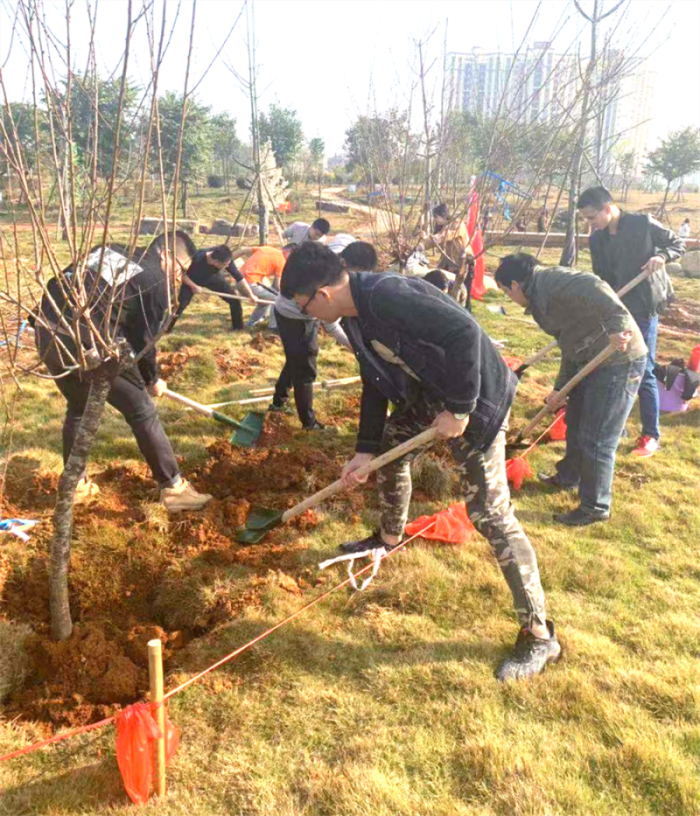 在活動(dòng)負(fù)責(zé)人進(jìn)行任務(wù)布置、流程講解后,城投集團(tuán)團(tuán)委的青年們便開始了有序的植樹活動(dòng)。大家分工明確、齊心協(xié)力,揮舞鐵鍬翻新土,扶植新苗列成行,呈現(xiàn)出一派熱火朝天的勞動(dòng)場(chǎng)面。