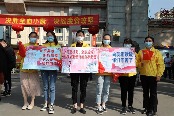 自新冠肺炎疫情發(fā)生以來(lái),賀州市共派出33名醫(yī)護(hù)骨干和1名防疫專家緊急馳援湖北開展醫(yī)療救治工作。他們帶著賀州市委、市政府的囑托和關(guān)懷,帶著家鄉(xiāng)246萬(wàn)人民的牽掛和關(guān)心,義無(wú)反顧投身抗擊疫情第一線。他們以信心、勇氣和醫(yī)技為疫區(qū)群眾筑起了堅(jiān)強(qiáng)的健康長(zhǎng)城,不負(fù)黨和人民托付,彰顯了敬佑生命、救死扶傷、甘于奉獻(xiàn)、大愛(ài)無(wú)疆的崇高精神,詮釋了醫(yī)護(hù)工作者的初心使命,充分展現(xiàn)了新時(shí)代賀州人民的責(zé)任擔(dān)當(dāng)和精神風(fēng)貌。