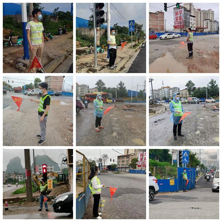 城投集團的志愿服務崗位位于八達東路交桂粵湘大道紅綠燈路口(八達東路原糖廠路口),城投青年志愿者不怕困難,不懼風雨,努力克服道路路況差、車流量大、下雨等不利因素,堅守志愿服務崗位,積極對車輛逆行、闖紅燈、不禮讓斑馬線和行人不走斑馬線、闖紅燈等一系列違法違規、不文明交通行為進行勸導,確保執勤路口交通規范有序。