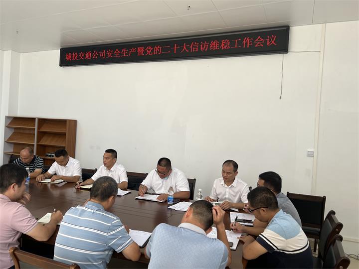 同日,交通公司召開安全生產與黨的二十大信訪維穩(wěn)工作會議。會議指出,做好安全生產與黨的二十大信訪維穩(wěn)工作責任重大,要站在講政治、顧大局的高度,保持清醒頭腦,認清嚴峻形勢,切實增強“時時放心不下”的政治責任感,嚴而又嚴、實而又實地防風險、保安全、護穩(wěn)定,堅決防止各類安全事故、信訪事件發(fā)生,努力為黨的二十大勝利召開營造安全穩(wěn)定的環(huán)境。