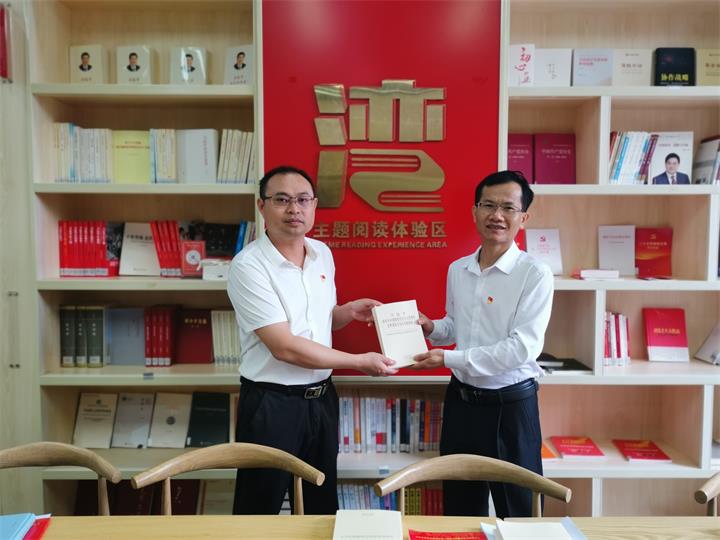 隨后,全體干部職工在“紅灣”閱讀體驗區集體靜心閱讀經典好書、好文,公司壯、瑤、漢等民族干部職工代表分享閱讀感想、體會。李羅清還為黨員干部贈送書籍。