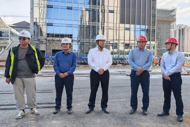 在城投大廈項目現場,黃俊強調,城投大廈已進入最后收尾攻堅階段,各參建單位要以交付使用為目標導向,進一步增強責任感、使命感和緊迫感,以更高標準、更實責任、更精準舉措抓緊抓實抓細項目收尾工作,確保如期完成交房目標任務。