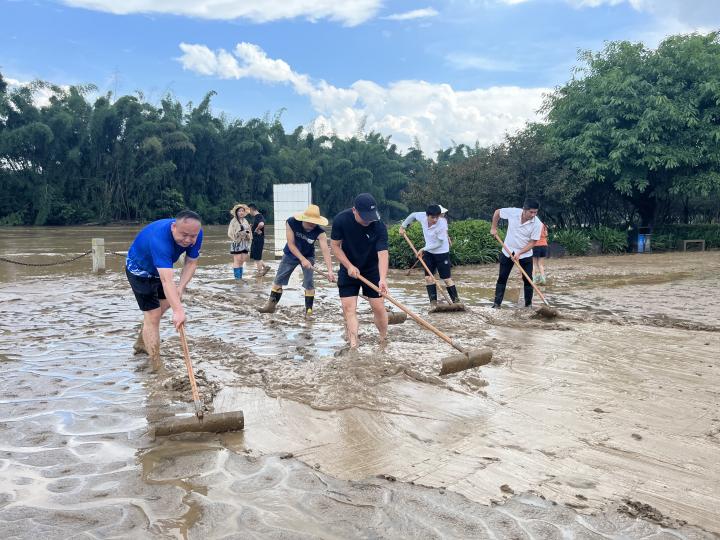 近日,我市遭遇強(qiáng)降雨,賀江水位迅猛上漲,城區(qū)部分區(qū)域范圍遭受不同程度的災(zāi)害影響,沿江而建的北堤公園因河水上漲也被洪水淹沒。隨著洪水退去,大量淤泥、雜物殘留在北堤公園河岸兩側(cè)。為盡快恢復(fù)北堤公園美麗整潔面貌,6月16日,城市運(yùn)營(yíng)公司副總經(jīng)理劉立忠率領(lǐng)城投物業(yè)公司全體干部職工攜帶高壓水管、鐵鏟、掃帚等工具趕赴北堤公園內(nèi)澇路段清理積水、淤泥。